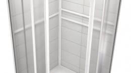 Shower cabins with designated as SBOXKH 2/80 are individual shower cabins ready to be installed at any time. They come out in quadrantal performance both 80x80 and 90x90 with a reinforced spot for mixer assembly in horizontal direction that is on one of the segments adjacent to the wall. Quadrantal cabin SBOXKH 2/80 is designed to be installed with shower-trays abounding in R50 radius. Quadrantal-type GOMERA 80x80 shower-tray from TEiKO range of products may be installed with this kind of a cabin. A facing panel is available to the GOMERA shower-tray as well. Shower-trays are laid on a self-supporting metal frame. Detailed information to the installation of SBOXKH 2/80 shower cabins may be found in the instructions referring to building readiness.